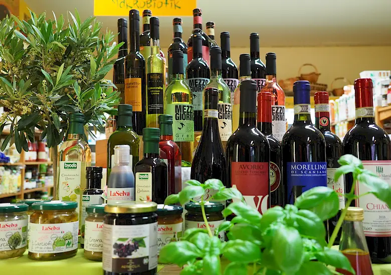 Wir bieten Ihnen ausgewählten Bio Weine, Sekt, Biere, Säfte, Erfrischungsgetränke, Mineralwasser, Quellwasser.